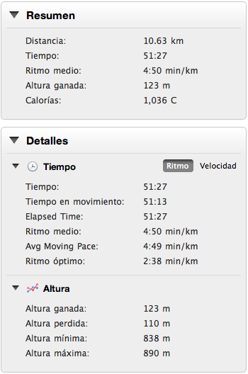 Aquí va la ficha del reloj gps con resumen de altitud, calorías, distancias, kilometraje total, tiempos...etc etc, y ya luego a otra cosa mariposa, que hay más cosas para hoy... Jejeje