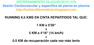 19:40 h. - 20:00 h. Y otros 20 minutos de trabajo intenso, esta vez en la piscina, donde hacía mucho que no paraba la verdad... Trabajo específico de piernas, ahí os dejo para que os animéis para hacerlo cuando vayáis a la piscina, que es genial, y además conseguís un gran trabajo: